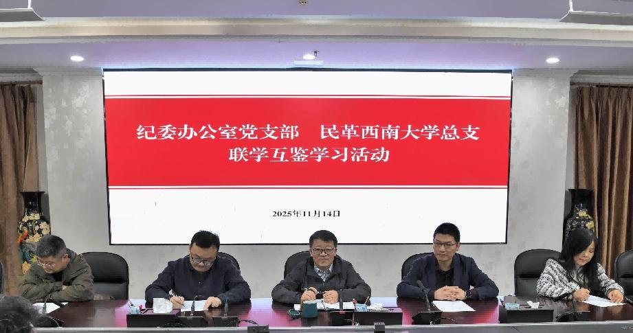 11月14日下午,纪委办公室党支部与民革西南大学总支共同开展“追寻科研初心 汲取奋进力量”联学共建活动。党委副书记、纪委书记嵇绍岭、民盟西南大学总支和纪委办公室党支部成员参加活动。